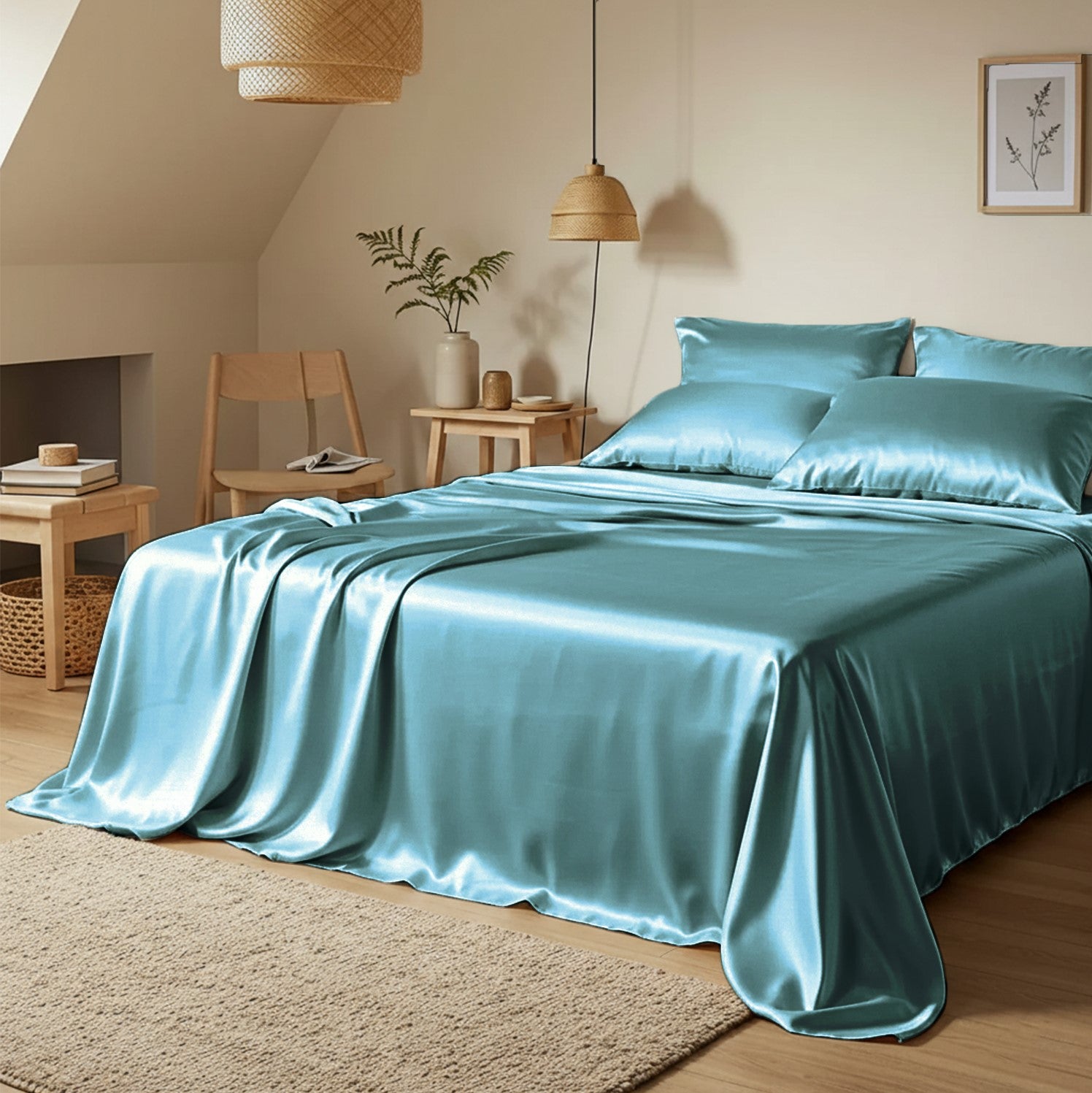 Luxurious Lavender Satin Bedsheet With Two Pillow Cover – Soft, Smooth & Elegant