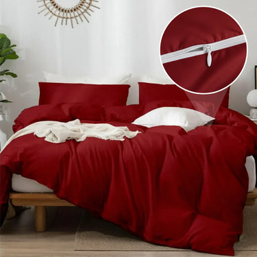 रज़ाई सुपर सॉफ्ट माइक्रोफाइबर 3 पीस डुवेट कवर सेट और 2 तकिये के कवर (18X28 इंच) - सिंगल, डबल, किंग साइज़ / बरगंडी