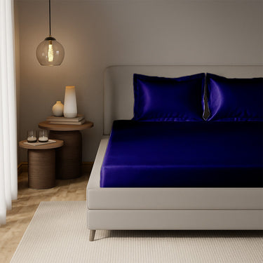 हल्के बैंगनी रंग की साटन की फिटेड बेडशीट | चिकनी मखमली फ़िनिश | प्रीमियम बेडरूम लक्ज़री