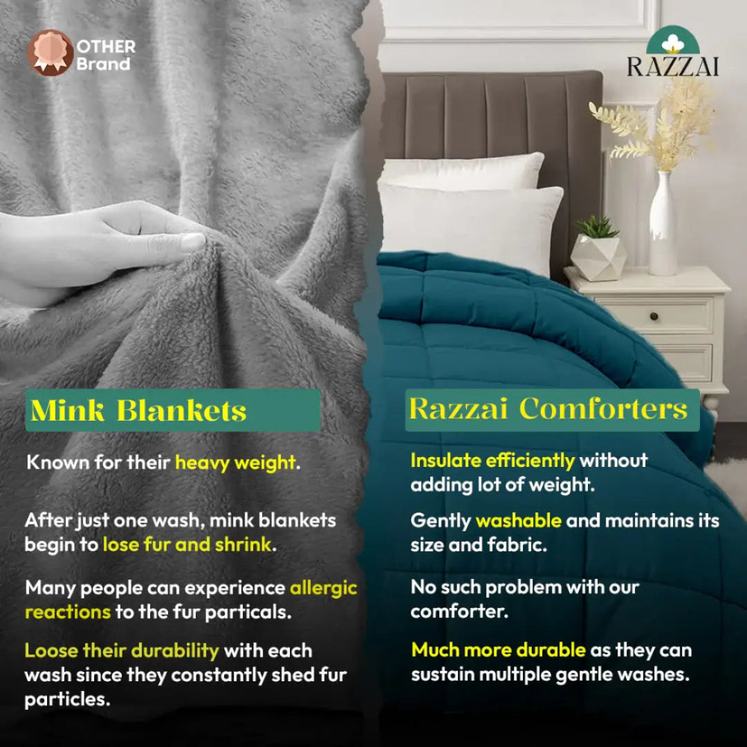 Each of our comforters is crafted with meticulous attention to detail, using only the finest materials. From ultra-soft microfiber to premium down, every product is designed to provide the perfect balance of warmth and breathability. Whether you're looking for a cozy winter comforter or a lightweight option for summer, RazzaiWorld has you covered.