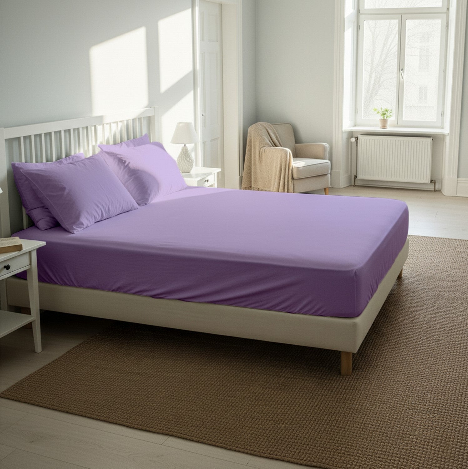 Lavender Pure Cotton Elastic-Fit Bedsheet + 2 Pillow Covers