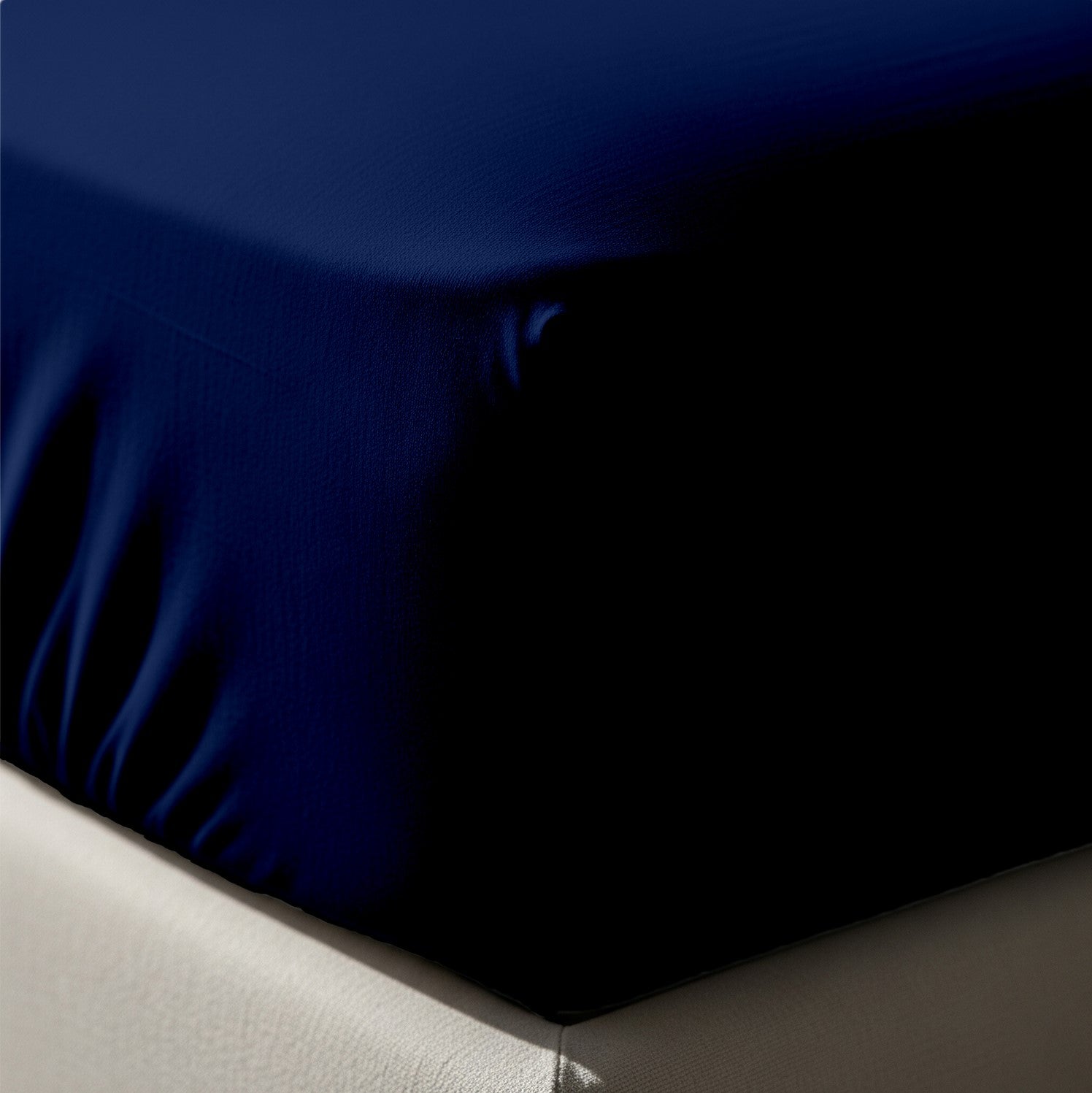 Navy Blue 300 TC Fitted Cotton Bedsheet With Two Pillow Cover