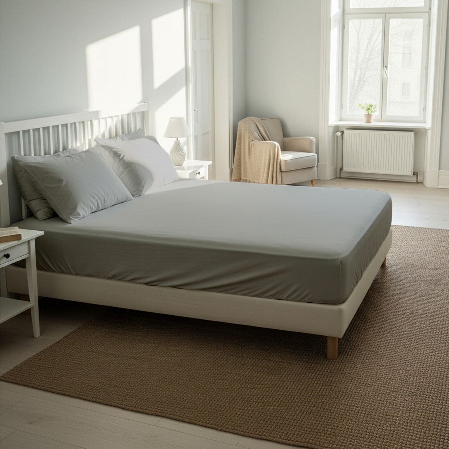 Silver Fitted Cotton Bedsheet With Two Pillow Cover – Cozy, Long-Lasting & Skin-Friendly